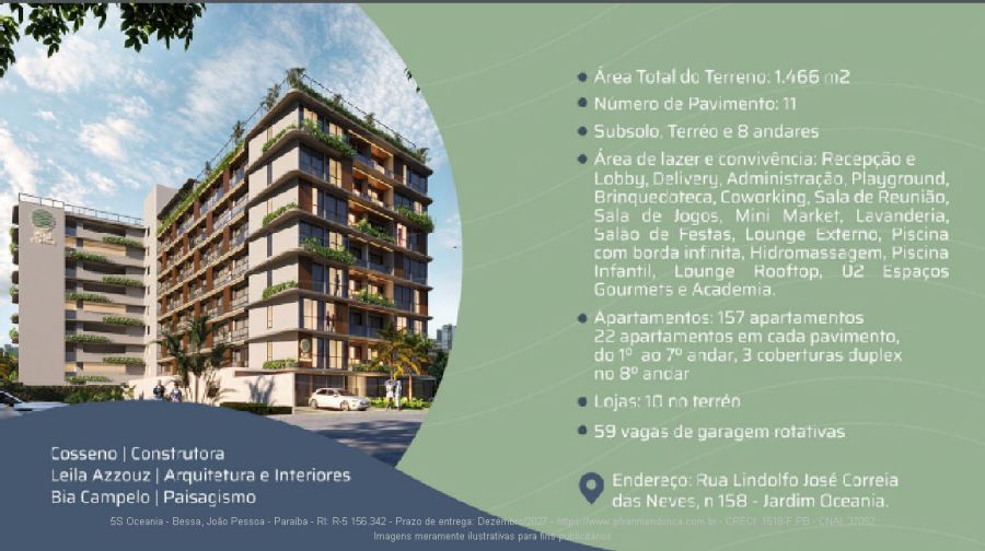 Descubra o 5S Oceania, um empreendimento exclusivo da 5S Engenharia no Bairro do Bessa, a apenas 300 metros do mar! Veja o Tour Virtual: Apartamento | Studio 01 | Studio 02 | Térreo | Cobertura