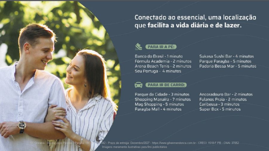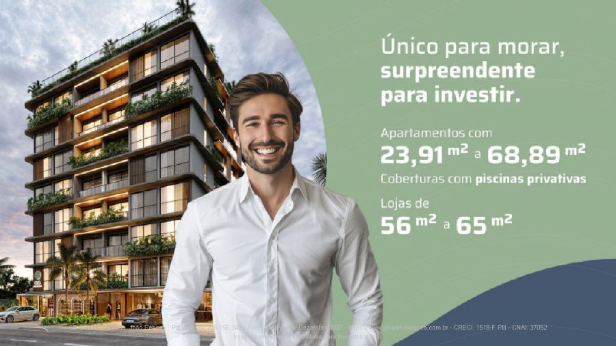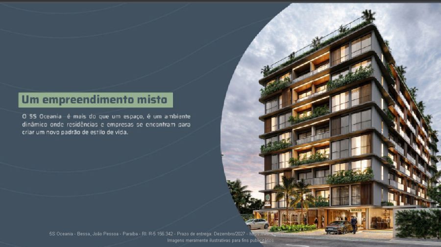 Empreendimento com uma arquitetura moderna e paisagismo pensado para conectar você ao mar, o 5S Oceania é perfeito para morar, investir e viver com qualidade. Um dos destinos mais procurados do Brasil, João Pessoa é um polo de crescimento e valorização imobiliária.