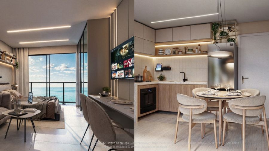 Apartamentos de 23,91 m² a 68,89 m², com 1 ou 2 quartos 154 unidades e 10 lojas comerciais 15 itens de lazer: piscina com borda infinita, hidromassagem, academia, coworking, mini market, salão de festas e muito mais!