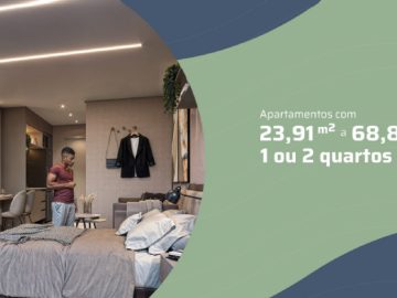 Apartamentos de 23,91 m² a 68,89 m², 1 ou 2 quartos