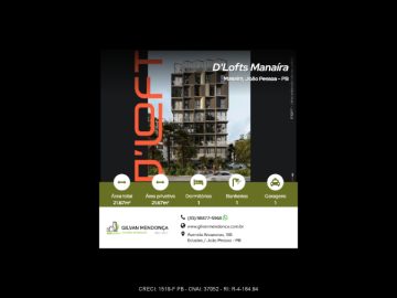 D'Loft - Manaírar, João Pessoa, Paraíba, Lofts com 21.67 m², Frente Sul, lavanderia, cozinha, banheiro, quarto/sala e varanda, sendo uma extensão do seu estilo. Tudo a poucos metro de distância e do mar. A localização estratégica do D'Loft está a poucos passos de tudo que você procura e precisa. Incluindo alguns dos lugares mais exclusivos e famosos da cidade. O D'Loft foi Desenhado para atender às suas necessidades.