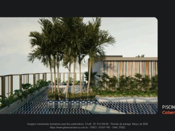 Suítes; Piscina; Deck molhado; Vagas Rotativas; Bicicletário; Lavanderia; Área Gourmet; Lounges; Espaço Comercial;