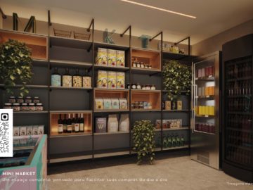 Piscina • Academia • Salão de festas • Brinquedoteca • Pet place • Rooftop • Espaço delivery • Lavanderia • Mini market • Playground • Espaço beauty • Storage • Recepção integrada