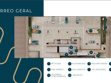 Pet place • Mini market • Playground • Sala do síndico • Recepção • Delivery room • Storage • Vestiários