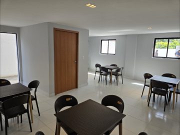 O empreendimento é composto por 55 aptos de 2 quartos com 1 WC e varanda, e área de 42 m² a 46 m². Além disto conta com um salão de festas já entregue todo mobiliado e equipado.