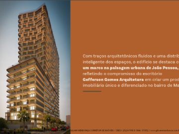 Com traços arquitetônicos fluidos e uma distribuição inteligente dos espaços, o Nakhon Manaíra se consolida como um marco na paisagem urbana de João Pessoa, refletindo o compromisso do escritório Gefferson Gomes Arquitetura em criar um produto imobiliário único e diferenciado no bairro de Manaíra.