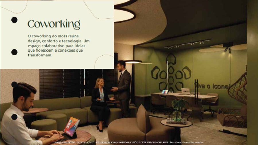 Coworking - O coworking do moss reúne design, conforto e tecnologia. Um espaço colaborativo para ideias que florescem e conexões que transformam.