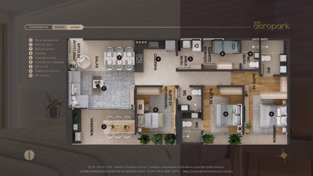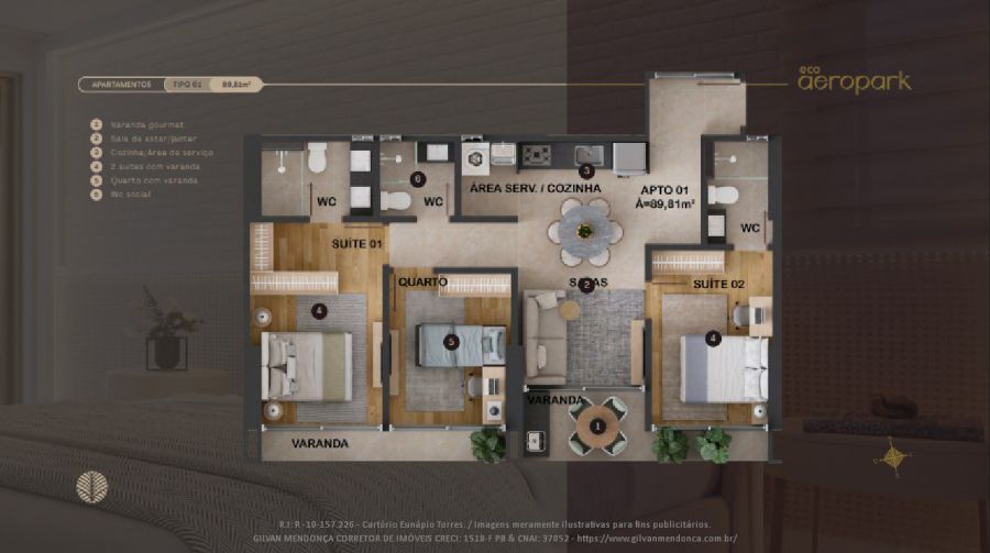 Eco Aeropark, Aeroclube - Apartamento 3 quartos (2 Suítes)