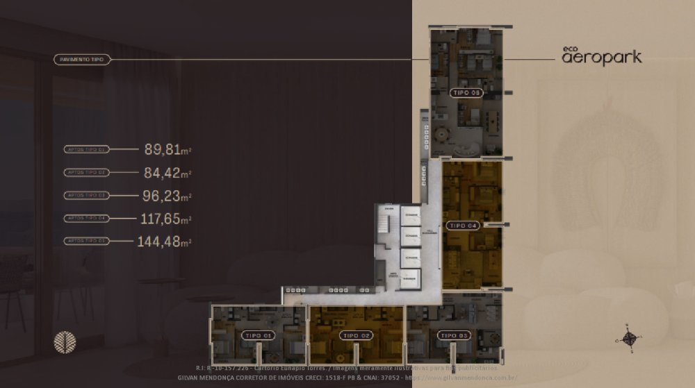 METRAGENS: Unidades com 84 m² a 144 m², 3 QUARTOS sendo até 3 suítes + dependência completa (nas unidades de 117m2 e 144 m2 (Tipos 05 e 05)