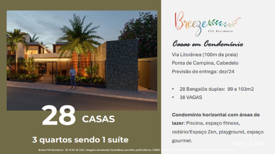 O Breeze FCK Residence é um condomínio fechado de casas duplex localizado em Intermares, na charmosa Praia de Ponta de Campina, em Cabedelo/PB, com fácil acesso pela Avenida Oceano Atlântico. Um empreendimento que une conforto, segurança e excelente padrão de acabamento.