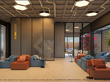Espaços que conectam bem-estar e convivência; Gentileza Urbana Jardim Contemplativo; Área de Convivência Recepção; Espaço Foop Lobby; Espaço Delivery