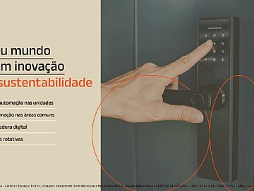 Seu mundo com inovação e sustentabilidade: Pré-automação nas unidades; Automação nas áreas comuns; Fechadura digital; Vagas rotativas