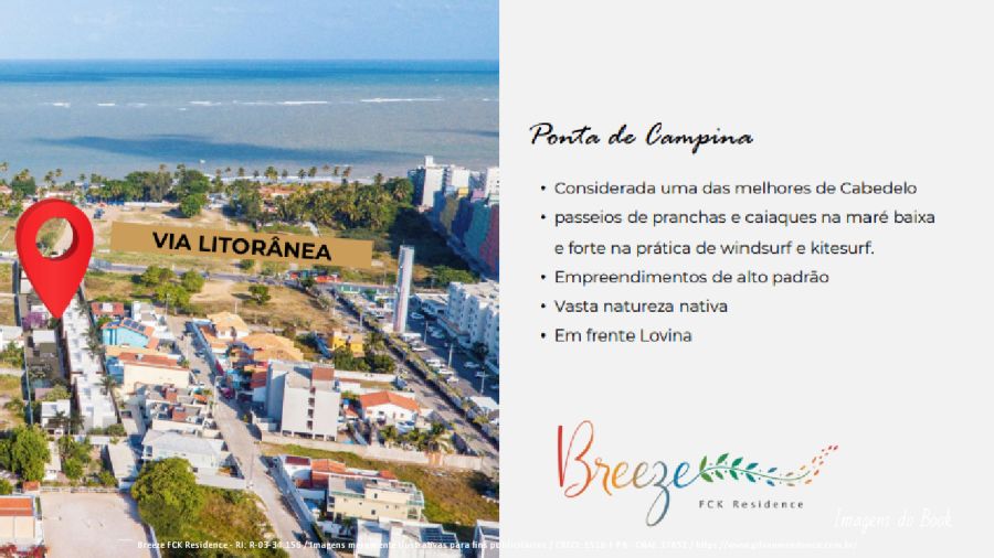 O Breeze FCK Residence é um condomínio fechado de casas duplex localizado em Intermares, na charmosa Praia de Ponta de Campina, em Cabedelo/PB, com fácil acesso pela Avenida Oceano Atlântico. Um empreendimento que une conforto, segurança e excelente padrão de acabamento.