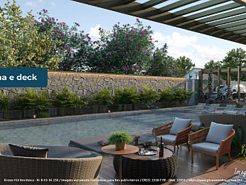 Piscina; Deck molhado; Espaço gourmet; Churrasqueira; Espaço fitness; Playground; Jardim; Infraestrutura e Segurança; Condomínio fechado; Portaria 24 horas; Guarita de segurança; Segurança patrimonial; Portão eletrônico; Catraca eletrônica; Interfone; Acesso para pessoas com deficiência; Iluminação pública; Gerador de energia; Medição de água individualizada; Estrada asfaltada; Galeria de águas pluviais; Estacionamento para moradores e visitantes