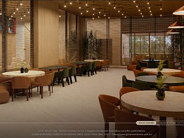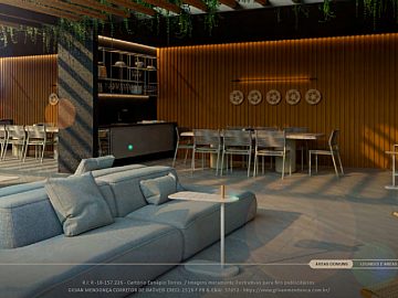 Raoftop garden; Wine bar; Coworking; Hall elevadores; Escadas; Wc's; Lixo.