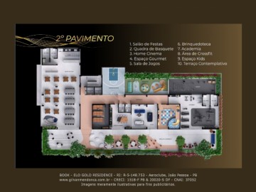 Pavimento 2: Salão de festas, quadra de basquete, home cinema, espaço gourmet, sala de jogos, brinquedoteca, academia, área de crossfit, espaço kids, terraço contemplativo.