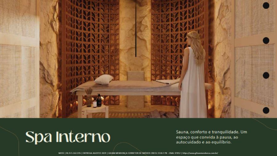 Spa Interno Sauna - conforto e tranquilidade. Um espaço que convida à pausa, ao autocuidado e ao equilíbrio.